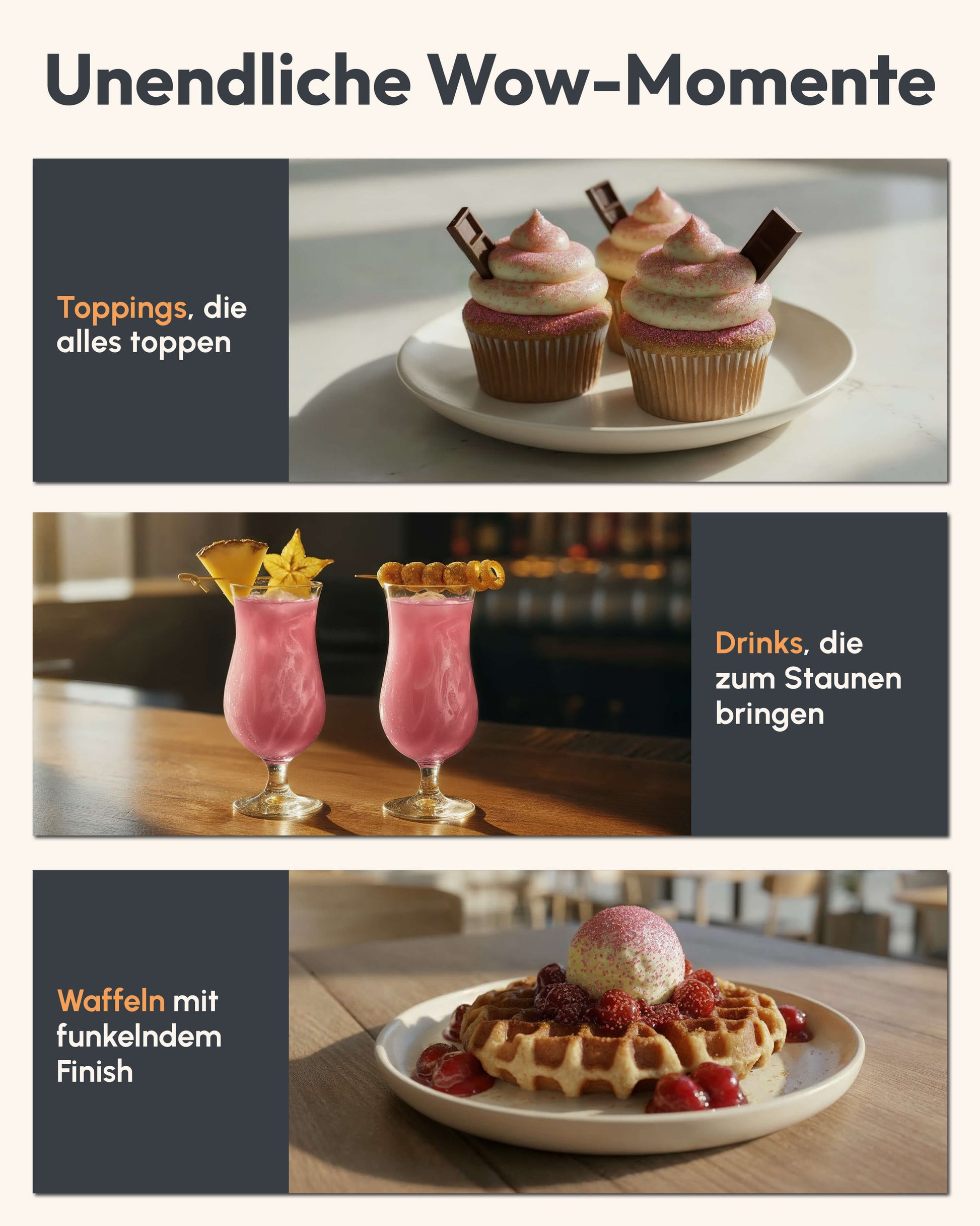 • Essbarer Glitzer für Torten, Desserts, Cocktails und mehr